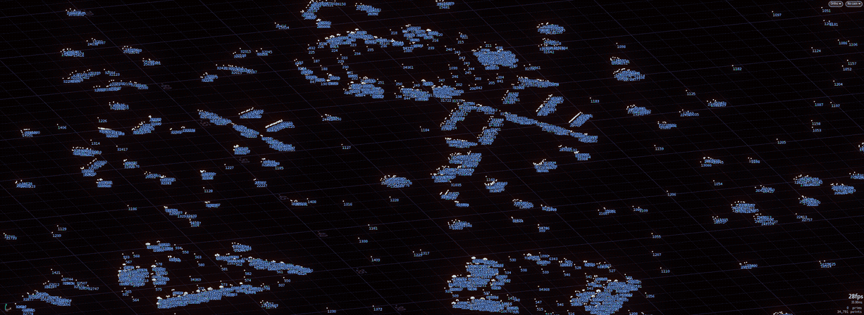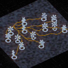The "find shortest path" algorithm is used to automatically connect snowflake statues and the neon source. The same algorithm allows me to easily drive neon "circulatory" animations.