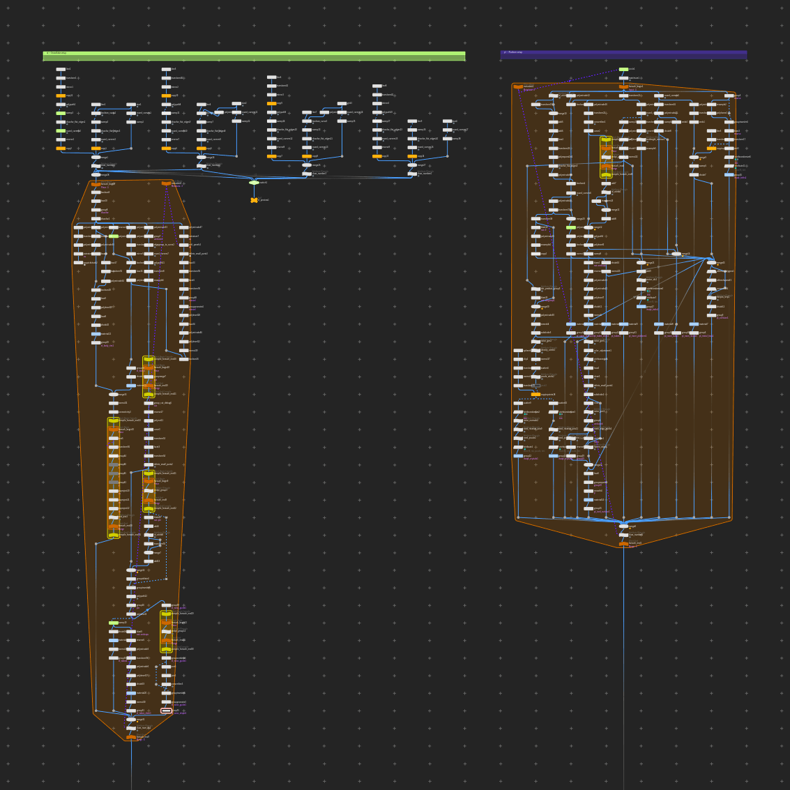 One complex logic inside the for-each loop is used to create multiple versions of the snowflakes, their platforms, and accurately placed neon tubes. As well as, changes inside the "loop" affects each outputted prop.